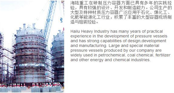 蘇州海陸重工股份有限公司位于江蘇省張家港市開發(fā)區(qū),是國內(nèi)一流的節(jié)能環(huán)保設(shè)備的專業(yè)設(shè)計(jì)制造企業(yè),目前并已初步形成鍋爐產(chǎn)品、大型壓力容器、核電設(shè)備、低溫產(chǎn)品、環(huán)保工程共同發(fā)展的業(yè)務(wù)格局。公司創(chuàng)建于1956年,注冊資本51640萬元,占地面積近50萬平米。公司下設(shè)八個(gè)控股子公司,一個(gè)余熱鍋爐研究所,在瑞士、北京、武漢、南京、上海、杭州、廣州等地設(shè)立分支機(jī)構(gòu),擁有雄厚的研發(fā)實(shí)力。公司秉承“科技領(lǐng)航、業(yè)界先鋒”的發(fā)展理念,注重研究廢熱、余熱利用和環(huán)境保護(hù)相結(jié)合的新技術(shù)研發(fā),自主設(shè)計(jì)能力居同行前列;公司承擔(dān)過國家863計(jì)劃,江蘇省科技成果轉(zhuǎn)化專項(xiàng)資金,榮獲國家科技進(jìn)步二等獎(jiǎng),產(chǎn)品擁有核心自主知識(shí)產(chǎn)權(quán)并取得專利50多項(xiàng);公司推行國際先進(jìn)的管理體系標(biāo)準(zhǔn)和認(rèn)證,擁有 A級鍋爐制造許可證,A1、A2、A3級壓力容器設(shè)計(jì)和制造許可證,取得了民用核承壓設(shè)備制造資格許可證、美國機(jī)械工程師學(xué)會(huì)(ASME)“S”、“U”鋼印,通過了ISO9001質(zhì)量體系認(rèn)證、健康體系認(rèn)證和14000環(huán)境體系認(rèn)證;公司設(shè)備先進(jìn),裝備精良,專業(yè)嚴(yán)謹(jǐn)?shù)闹圃炖砟畲蛟斐銎焚|(zhì)非凡、質(zhì)量一流的“海陸”品牌聲譽(yù)。